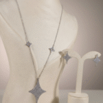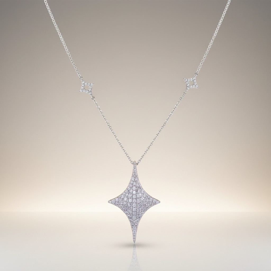 مصنوع بدقة عالية تعكس فخامة التفاصيل، مطلي ذهب وتتوزّع فيه أحجار الزركون الأصلي بترتيب يلمع مثل نجم ثابت في السما.