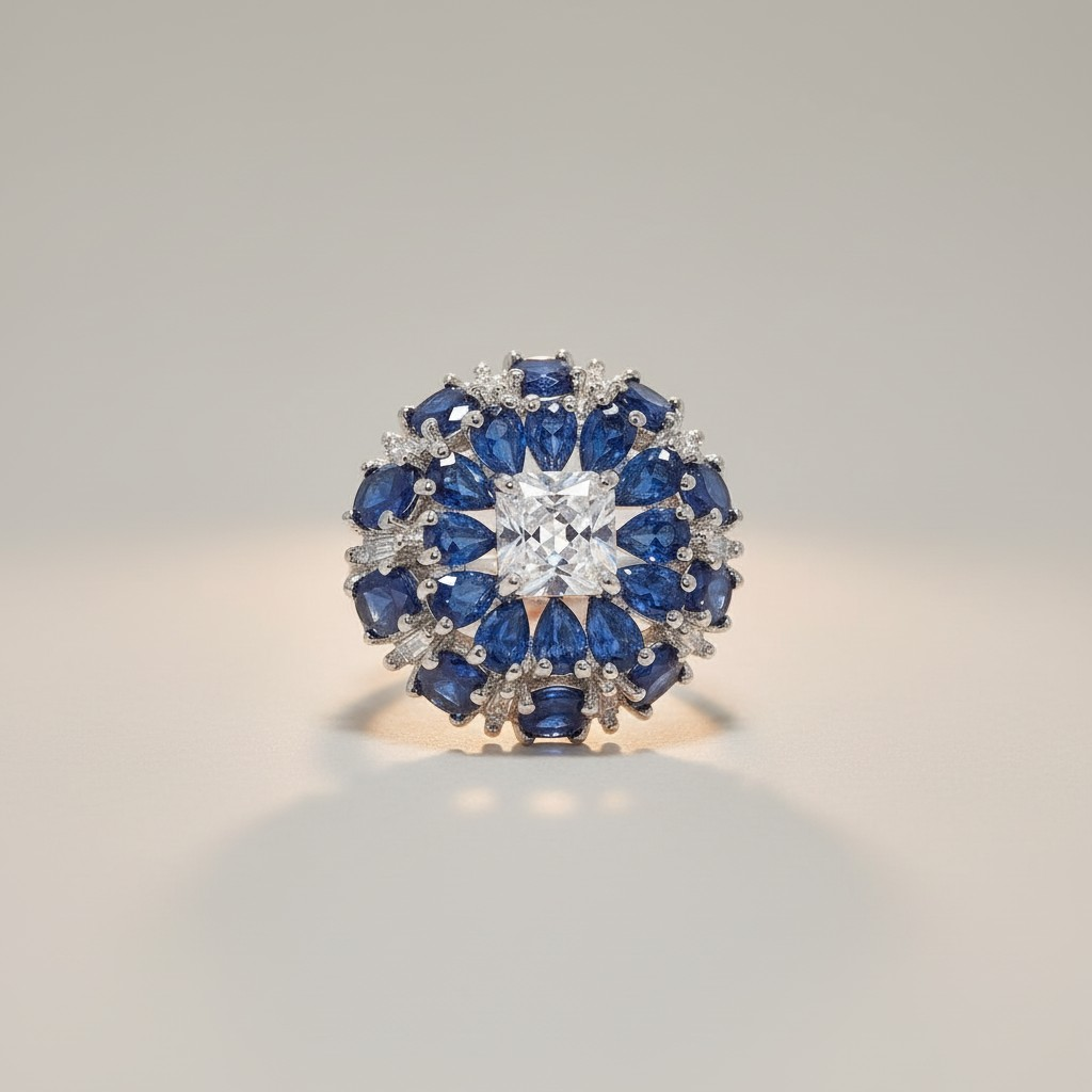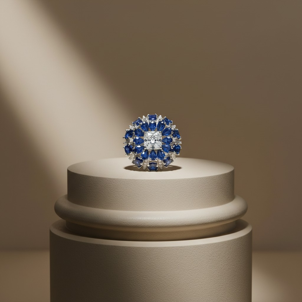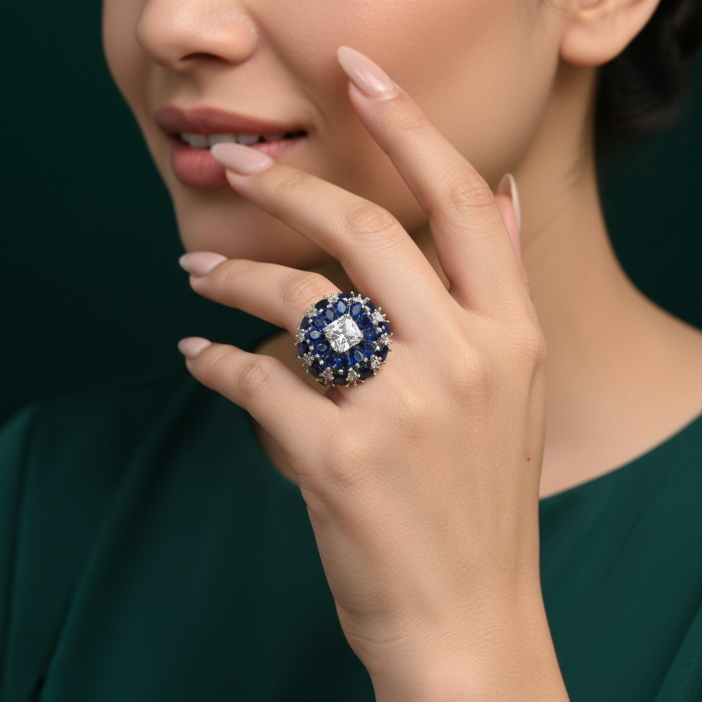 خاتم فاخر بتصميم أنيق و حجم كبير، يتوسطه حجر لامع بقصّة مربعة تحيط به تفاصيل زرقاء غنية تمنحه حضورًا راقيًا ولمسة فخامة آسرة. يأتي باللون الفضي ومطلي بالبلاتينيوم، ومرصّع بزركون عالي الجودة بتصميم ولمعان يشبه الألماس، ليضيف إلى إطلالتك تميزًا أنيقًا وجاذبية لافتة. هيبوالرجينيك، مقاوم للصدأ، وثابت اللون مع العناية المناسبة وتجنب تعريضه المباشر للماء.
