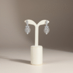 تأتي الأقراط المتناسقة بنفس الزخارف الدقيقة لتعكس جمال التصميم وتمنح الإطلالة تناغماً راقياً يجمع بين الفخامة الكلاسيكية والحضور اللافت.