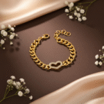 سوار فاخر بتصميم سلسلة أنيق يتوسطه قلب مرصع يضيف لمسة ناعمة وراقية إلى الإطلالة. يجمع التصميم بين بساطة السلسلة الكلاسيكية ولمعة التفاصيل المرصعة، ليمنح القطعة حضورًا أنثويًا جذابًا يناسب الإطلالات اليومية والمناسبات الخاصة.