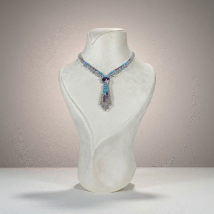 السطح المرصّع بالكامل يعكس الضوء ببريق متوازن، بينما يمنح التصميم المتدلي حركة أنثوية أنيقة تضيف حضوراً عصرياً راقياً.