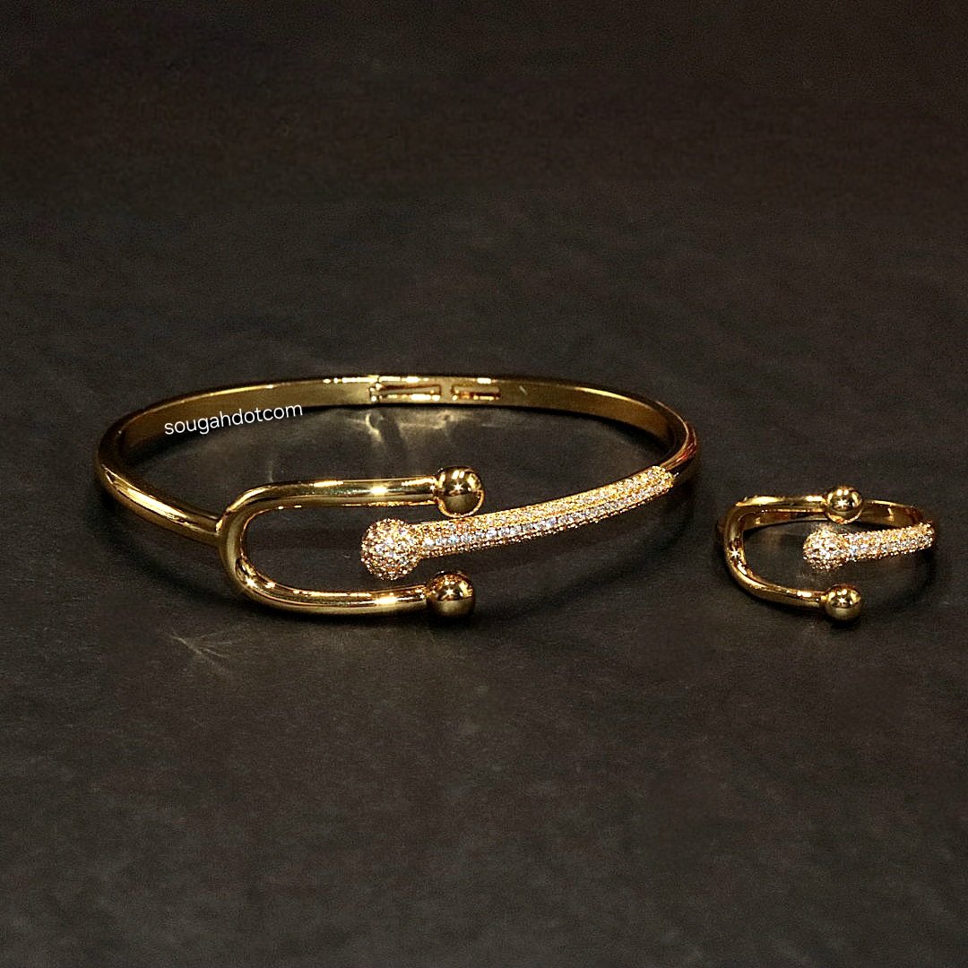 سوار وخاتم مطلي بالذهب بفخامة راقية