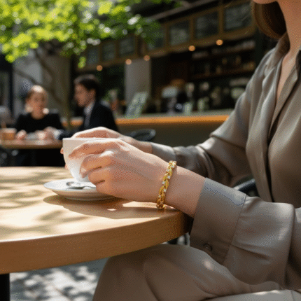 سوار فاخر بتصميم ناعم وراقي، يتوسطه تنسيق أنيق من تفاصيل كمثرية مرصعة ولمسات بيضاء ناعمة تمنح القطعة إحساسًا أنثويًا راقيًا وإشراقة هادئة تلفت النظر من أول لمحة. يجمع التصميم بين الرقة والفخامة بأسلوب متوازن، ليكون مثاليًا للإطلالات اليومية الراقية والمناسبات الخاصة.