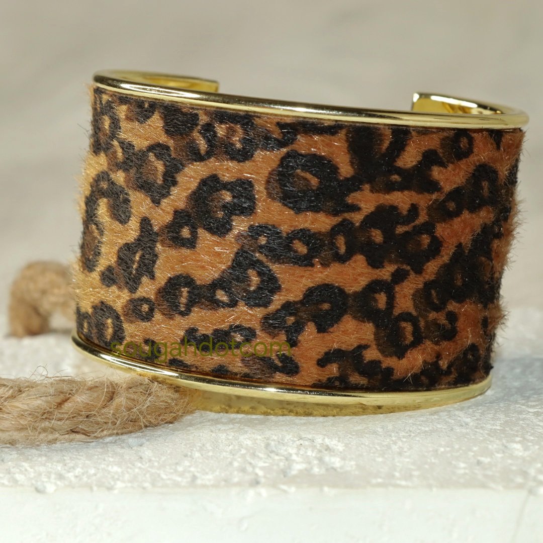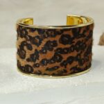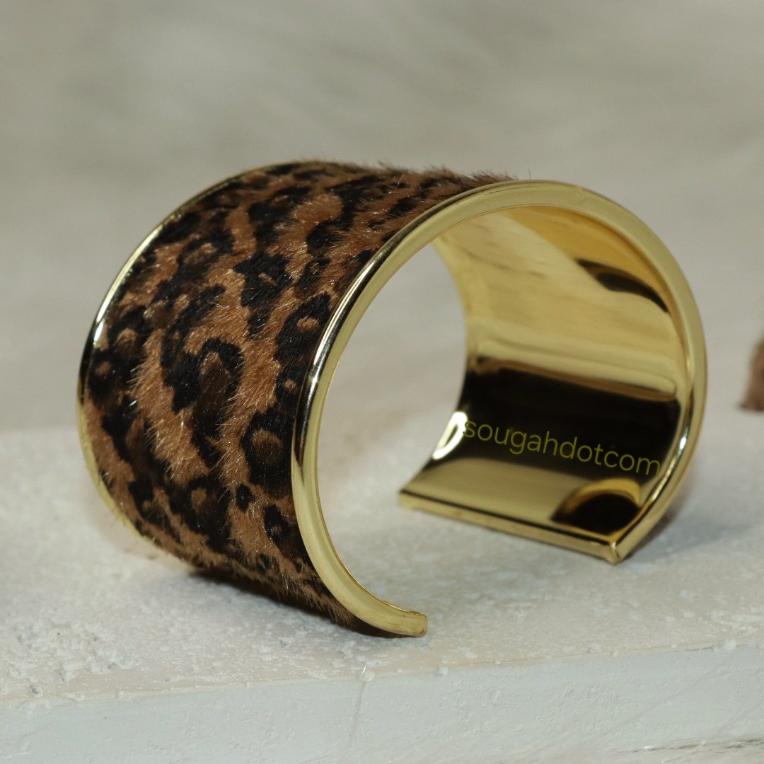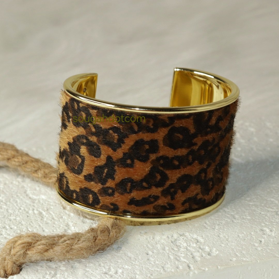 سوار كف مفتوح بنقشة جلد النمر المخملية، بتصميم فينتاج عريض ولافت، يعكس جرأة أنثوية وفخامة مميزة