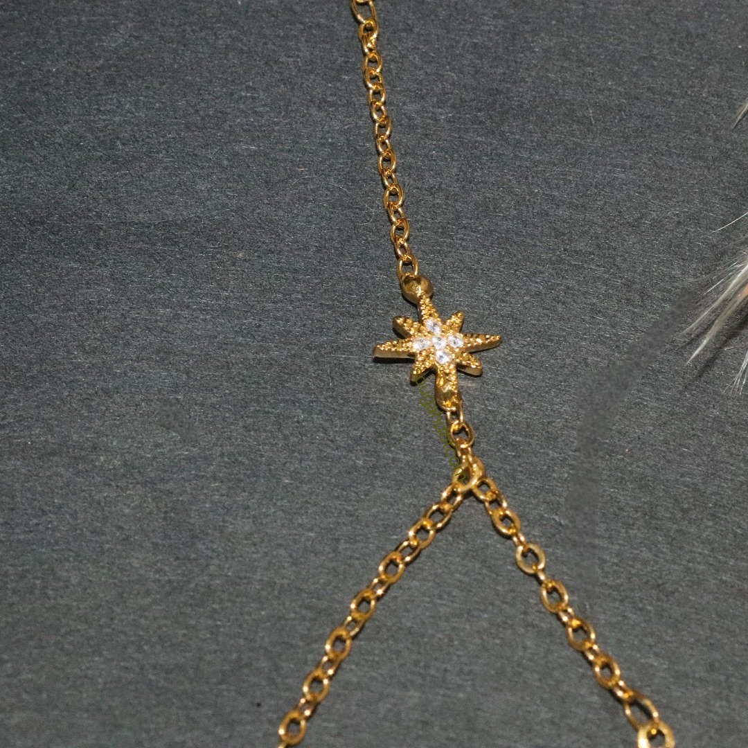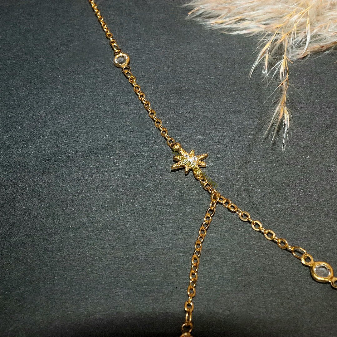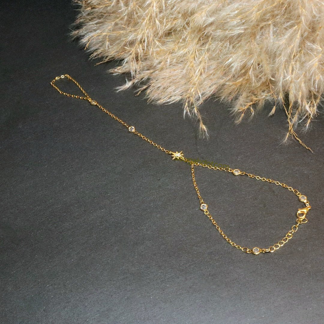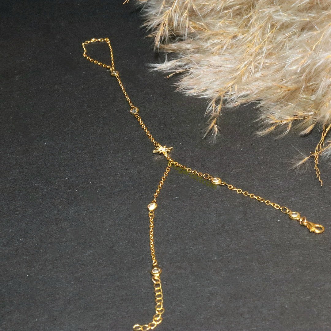 اسوارة يد بخاتمها مطلي ذهب مه نجمة زركون تلمع فوق اليد لتزيدها جمالية